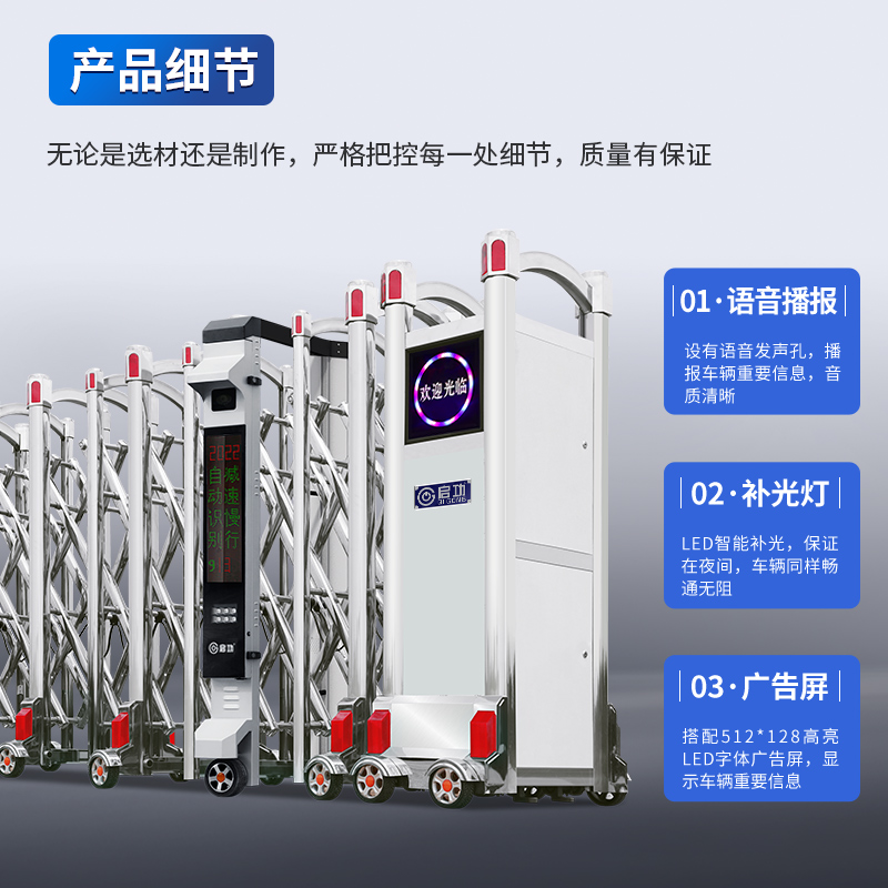5、门体活动特点:采用不锈钢管、尼龙胶垫组装,使用耐磨套管;