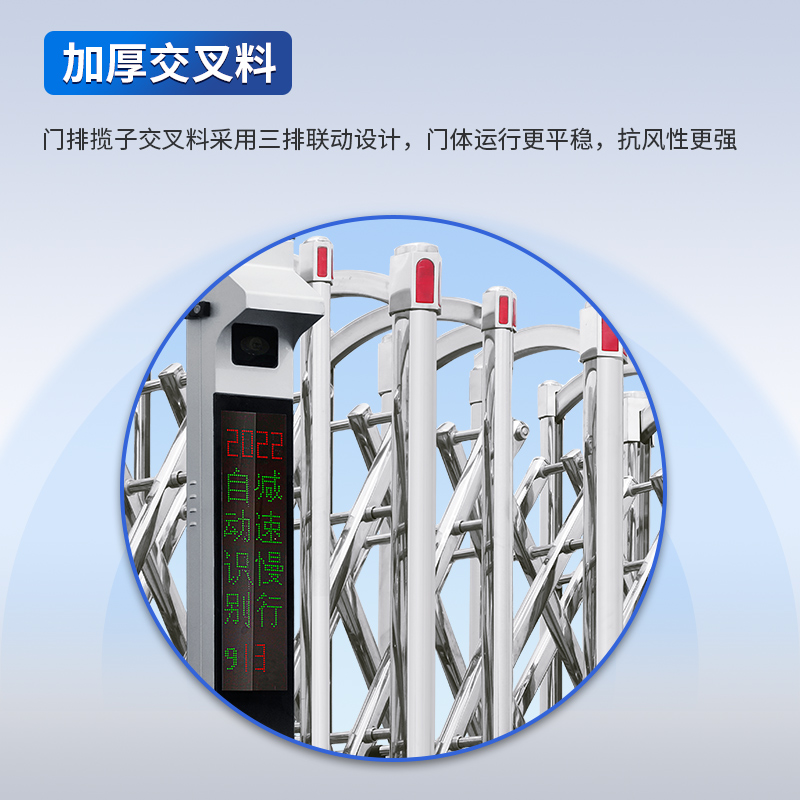 4、门体有电子软启动和机械缓冲装置配合,启闭时主机不摇晃且运行顺畅;