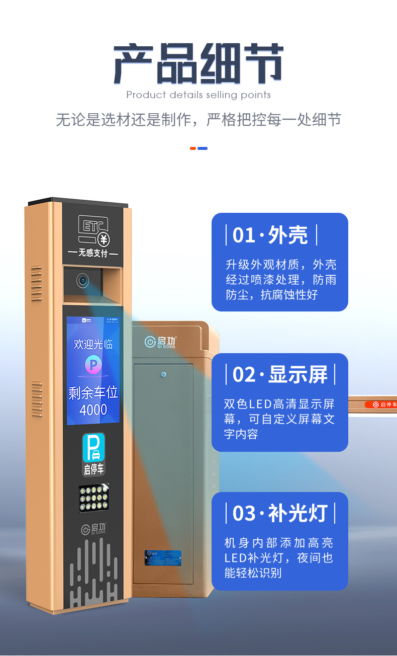 2.语音提示系统:真人语音播报进出状态、缴费提醒等重要信息;